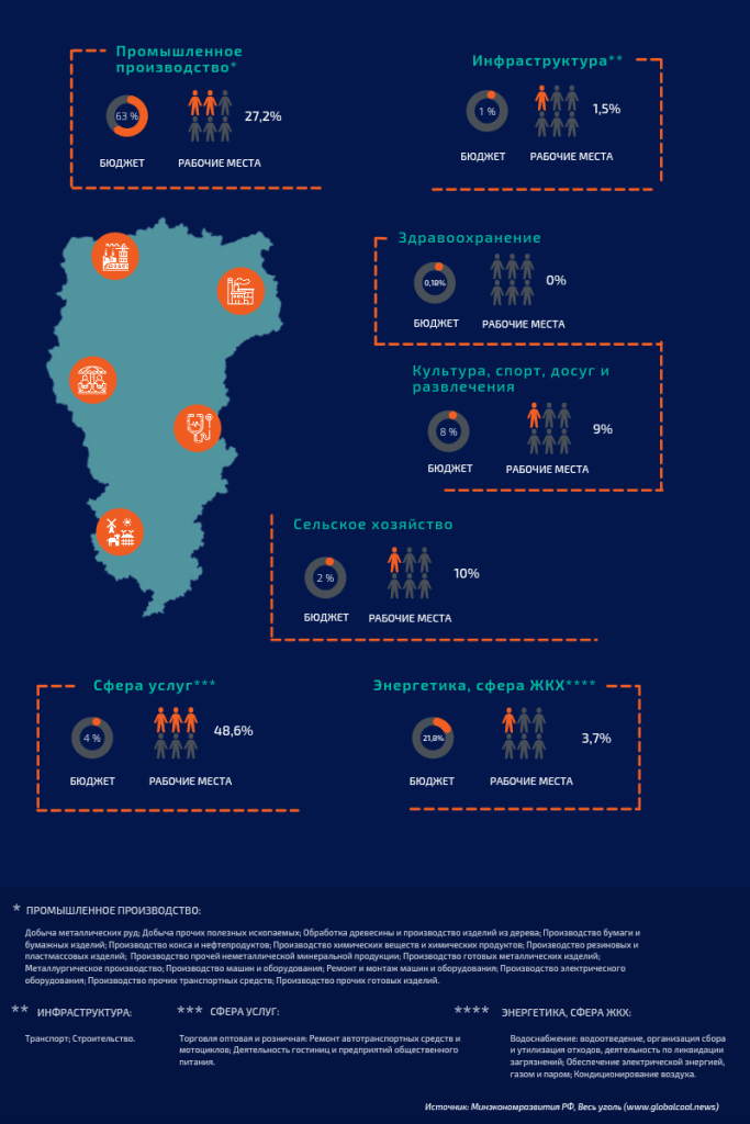 Как указывается на сайте ведомства, для обоих регионов «стоит задача по увеличению занятости в отраслях, не связанных с добычей угля, и созданию условий для устойчивого развития экономики».