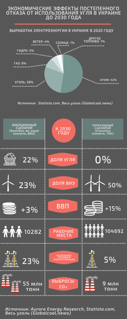 Кроме того, поэтапный отказ от угля и переход на возобновляемые источники энергии (ВИЭ) являются частью обязательств Украины в рамках гармонизации законодательства с Европейским союзом и выполнения целей Парижского соглашения по климату, подчеркивают эксперты.